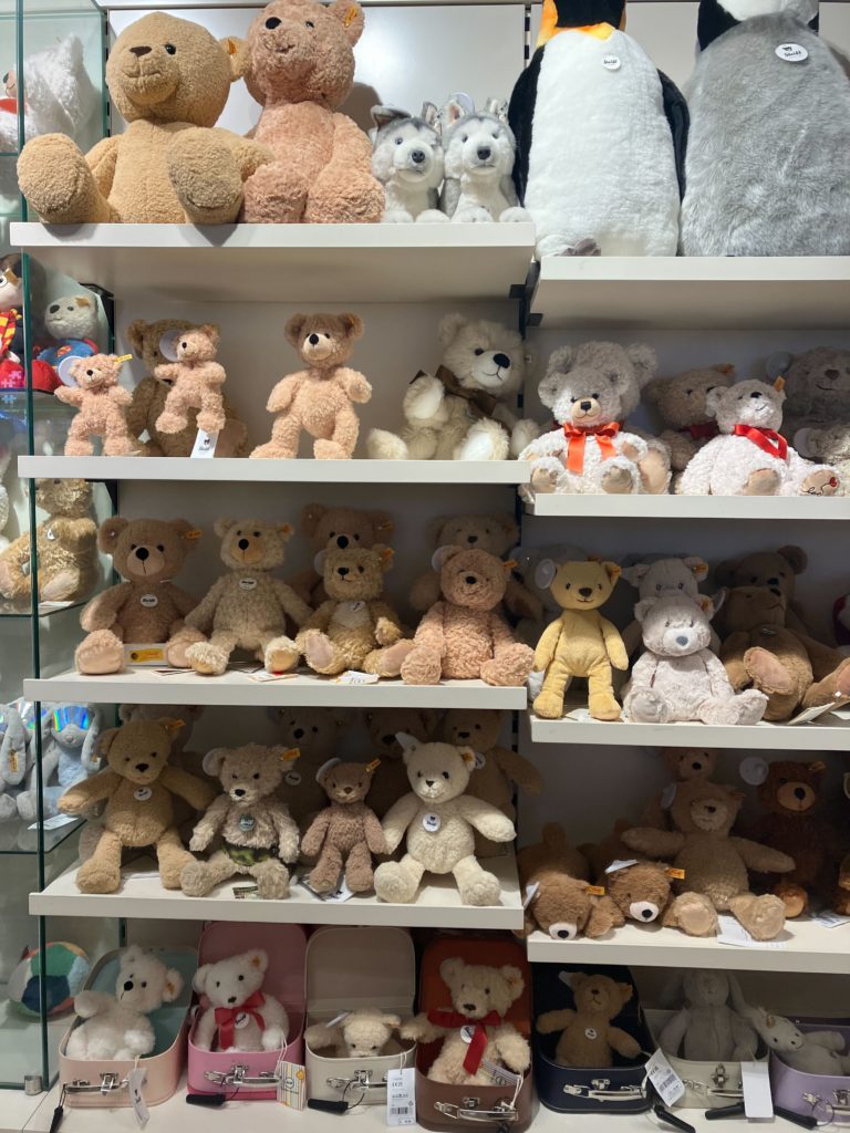 ちなみに価格は18 cmのテディーベアで23ユーロくらい。日本で買うと6000円以上する。